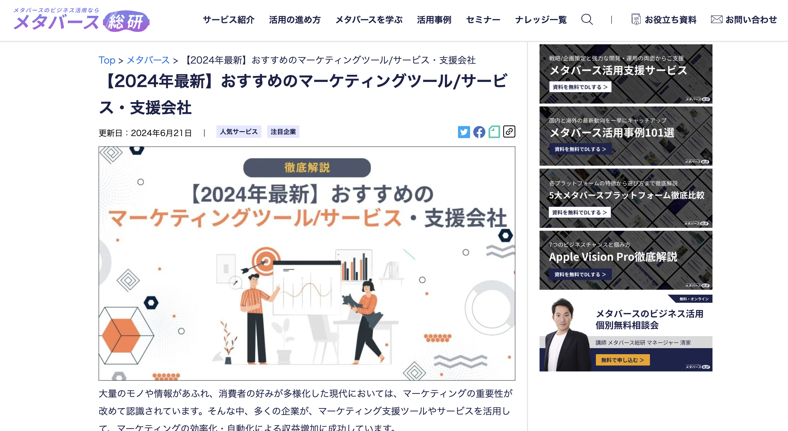 この度、「メタバース総研」の「【2024年最新】おすすめのマーケティングツール/サービス・支援会社」の記事に「Break Marketing Program」 が掲載されました!
